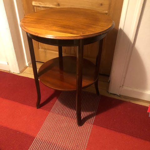 Bordet har en unik træåretegning, da det er mahogni, hvor jeg har slebet lakken af og bejset det. På udtrækspladen har jeg endnu ikke fået lakken af.