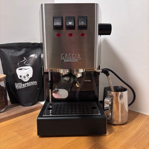 Gaggia Magenta Milk fuldautomatisk espressomaskine. Alt fungerer og den er løbende rengjort og afkalket samt brugt med vandfilter. Dog er hanken på vandbeholderen knækket (vist på billede 2, men jeg har bare fyldt vand på med en kande eller løftet direkte i beholderen. Ny kan sikkert købes.