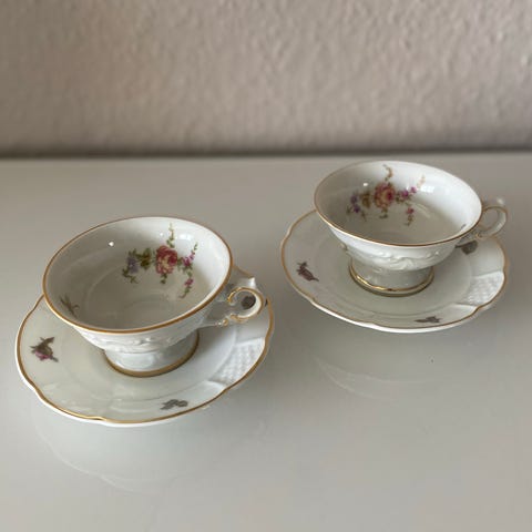 Porcelæn, Kopper, Karlskrona, 4 hvide svenske Karlskrona moccakopper/ kopper med riller og guldkant sælges.
