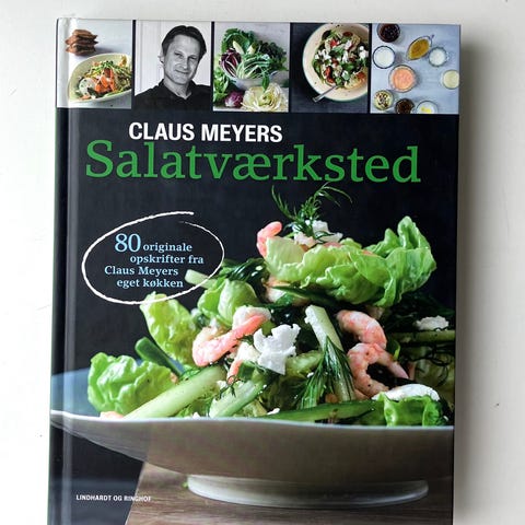 Jeg har til salg bogen "Claus Meyers Salatværksted"- 2012, 218 sider. Heftet forlagsbind. Praktisk forfat. Bogen er i meget fin stand og om næsten ny.