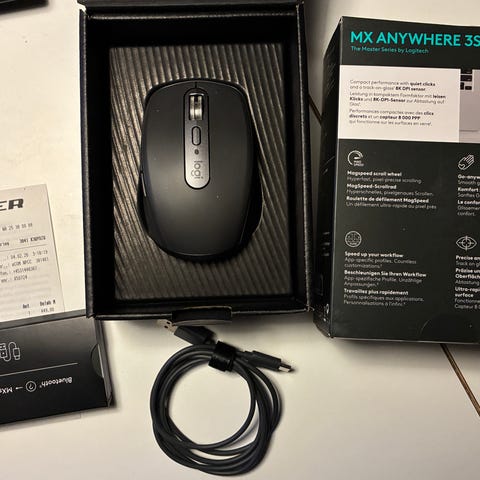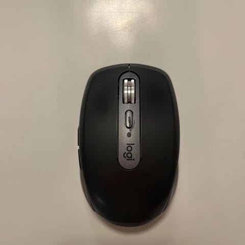 Logitech trådløs mus i sort farve med flere knapper og scrollhjul. Designet til brug med computere og tilbyder trådløs forbindelse for øget bevægelsesfrihed.
