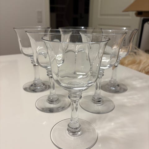 Holmegaard glasværk, Knipling med optiske striber på kumme. Fremstillet i 1982-95. Relanceret af Michael Bang ud fra den gamle udgave fra 1923 designet Oluf Jensen. Her sælges altså 6 hvidvinsglas som efterhånden er ved at være et samlerobjekt. Se også vores andre annoncer - herunder også andre størrelser af Holmegaard Knipling serie. Afhent i Køge eller sendes. Prisen er for alle 6 glas og sælges ikke enkeltvis. Tlf 40500544