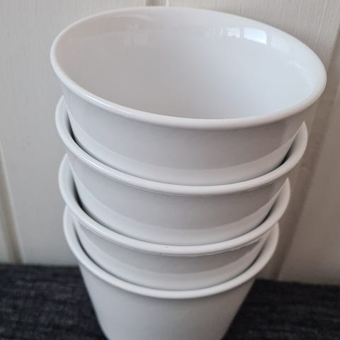 2 hvide skåle i flot form. Ikea. Dia 16cm. Ingen skår eller andet. Meget fine. Sælges samlet.