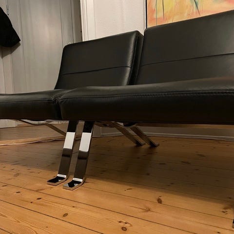 SUPER FEDE DEDIGN LÆNESTOLE I SORT LÆDER OG CHROM STEL. RIGTIG STILFULDE OG FLOTTE PÅ FX ET KONTOR ELLER I STUEN, PLUS DE HAR EN RIGTIG GOD SIDDEKOMFORT .