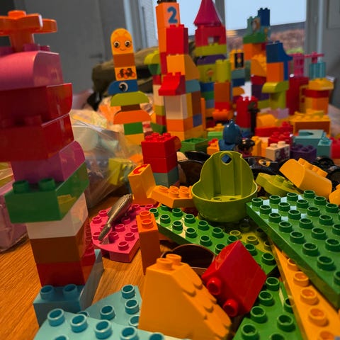 LEGO DUPLO byggeklodser i forskellige farver og former. Egnet til små børn til leg og læring.