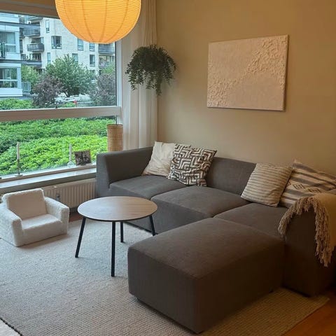 Description: Spacious and comfortable grey corner sofa (AARHUS model from JYSK). Very good condition. From a smoke-free and pet-free home.