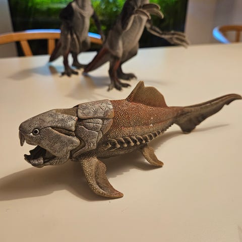 Schleich dinosaur skeletter bestående af forskellige dele, De to komplette skeletter er ca 10 cm lange..