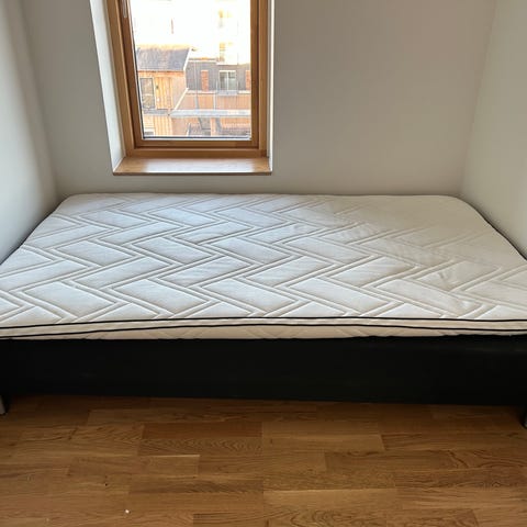 Boxmadras fra Jysk med Royal Arctic LUX Topmadras fra 2024. Kun brugt som gæsteseng, så brugt få gange. Målene er 120x200 cm.