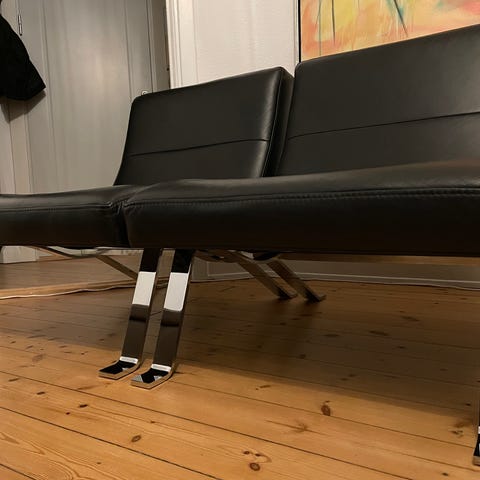 SUPER FEDE DEDIGN LÆNESTOLE I SORT LÆDER OG CHROM STEL. RIGTIG STILFULDE OG FLOTTE PÅ FX ET KONTOR ELLER I STUEN, PLUS DE HAR EN RIGTIG GOD SIDDEKOMFORT .
