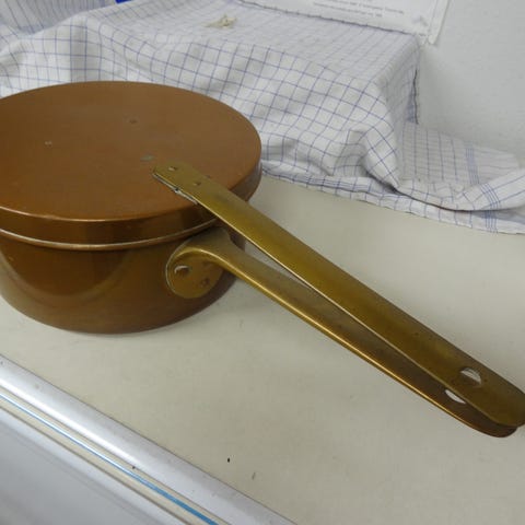 Antik kobbergryde med låg