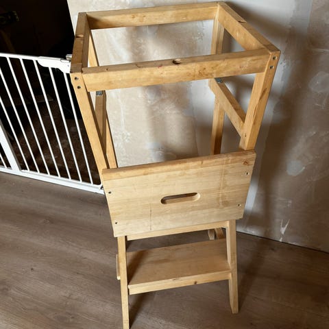 IKEA Børneskammel bygget om til et læringstårn i sort.