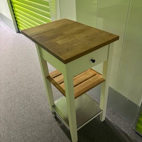 IKEA STENSTORP, rullebord til køkken eller andet. Er blevet behandlet med neutral olie. Har en plet fra kaffe som er løbet over fra maskinen som ikke blev opdaget rettidigt. Ligerne det kan slibes ned for så derefter at give det en gang olie.