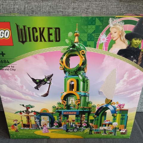 LEGO Wicked Emerald City legetøjset med detaljeret Emerald City bygning og figurer fra Wicked temaet. Sættet inkluderer karakterer som Glinda og The Wizard samt tilbehør til leg og samling. Designet til børn fra 9 år og op.