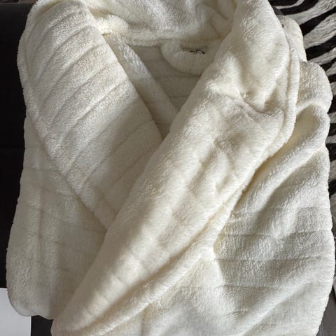 Badekåben er i 100% bomuld og i størrelse one size. Den er ubrugt og i helt ny stand.