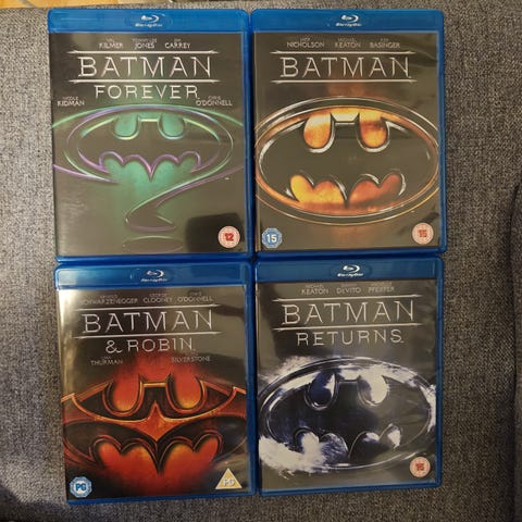 Batman DVD-samling / Blu-Ray bestående af 9 film: Batman, Batman Returns, Batman Forever, Batman & Robin, Catwoman, Batman Begins, The Dark Knight, The Dark Knight Rises og Batman vs. Superman. Filmene sælges kun samlet.