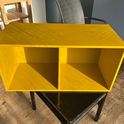 1x KUBIK Color reol med 2 rum, leveres samlet, 70 x 35 x 32 cm, MDF malet i Antracit, husk at bestille ophængsliste(mangler) hvis kassen skal vægmonteres, kan stå på sokkel eller monteres med hjul eller ben. Kassen kan benyttes både liggende og på højkant.
