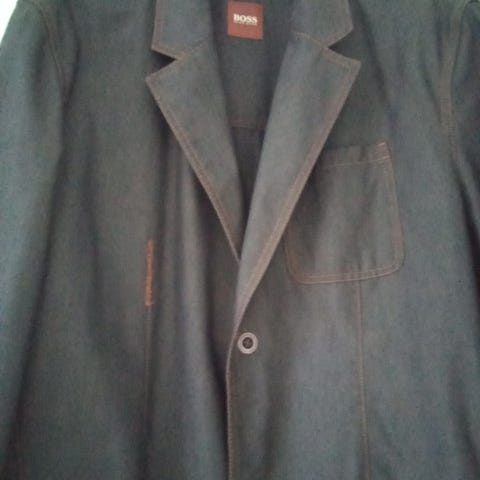 Hugo Boss Blå Uld Herrejakke i størrelse 48. Jakken er fremstillet i uld og har en blå farve. Designet til mænd, egnet til formelle og professionelle sammenhænge. Skridtlængde: ca 75
