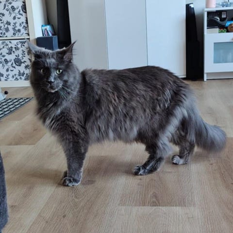 Han er fra 22 og er far til flere smukke killinger. Han er ikke kastreret. Han er uden tavle med mor har vi stadig herhjemme og far var også købt som Maine Coon uden tavle. Billeder af far kan fremvises. Og mor kan ses herhjemme. Han er vant til børn, hunde og andre katte. Lige når går han sammen med hans søn. Og det fungere fint uden problemer. Det er op til folk selv om de vil bruge ham videre til avl eller bare som hygge kat. Han er meget kælen og snaksalig.