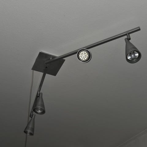 Loftlampe med 5 halogenspots som kan drejes som man vil.