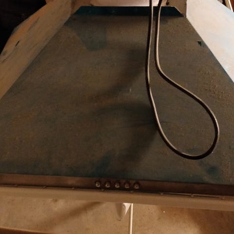 Whirlpool emhætte i rustfrit stål. Designet til installation over komfur for effektiv ventilation i køkkenet.
