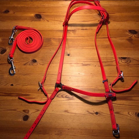 Trense med tilbage træk i str cob. Pandebåndet er købt andet stedes. Kun brugt få gange da hesten blev solgt. (Uden bid)