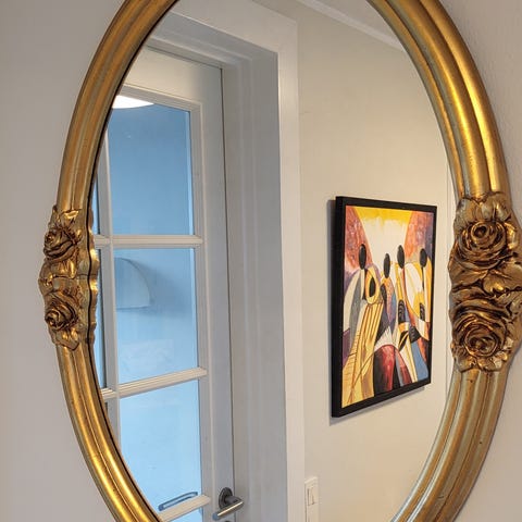 Ovalt Spejl m/guldramme H80xB45