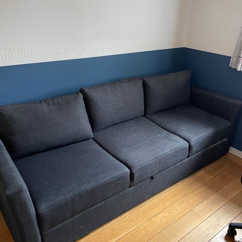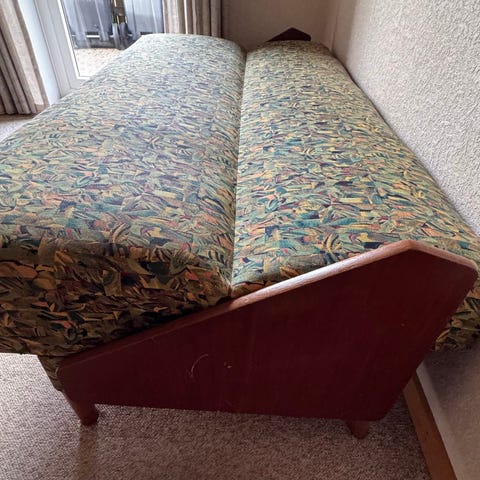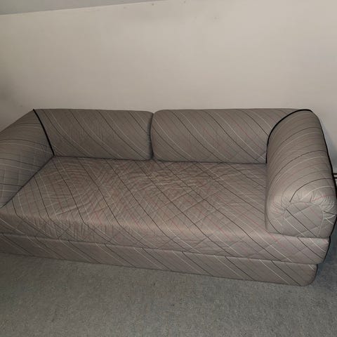 Sovesofa/sofa fra 1960’erne. Egentlig ret velholdt, men har en skjold på ryggen fra vand.