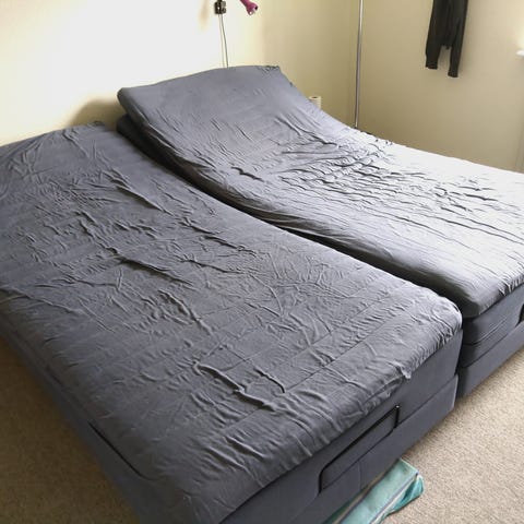Jupiter elevationsseng fra Bedre Nætter med Gavl. Består af 2 enkelt senge 90×200, som er spændt sammen med sådan en sammenholder-dims.