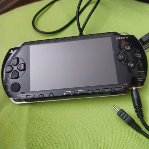 Sony PSP spillekonsol med 6 spil, oplader og taske