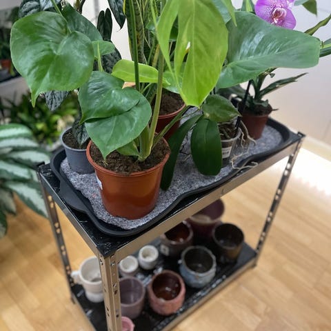 Begge hylder har en blød absorberende måtte, som holder på fugten og giver planterne vand helt automatisk.