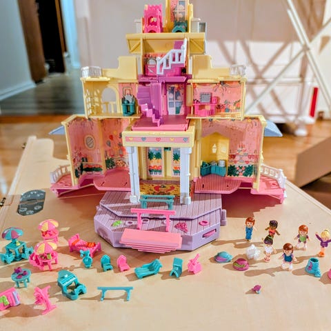 Wedding Chapel med tre tilhørende figurer og hvid kjole. Lyset virker, men knappen til tænd/sluk popper ikke altid op af sig selv igen - den kan dog let trækkes op så man kan tænde og slukke igen.