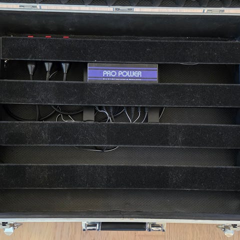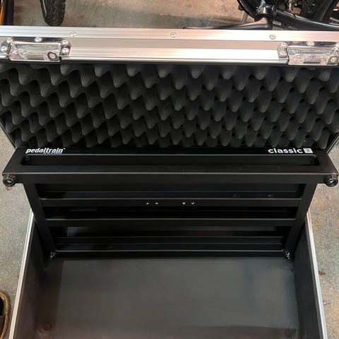 Pedaltrain Metro 20 og Cioks Adam link strømforsyning samt skruefrit beslag til Pedaltrain.