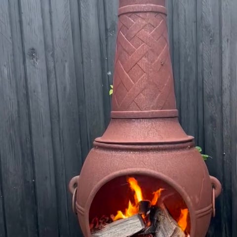 Udendørs ildsted i støbejern med dekorativt mønster. Designet til brug i haven eller på terrassen til opvarmning og hygge. Fremstillet i holdbart materiale, der tåler udendørs vejrforhold.