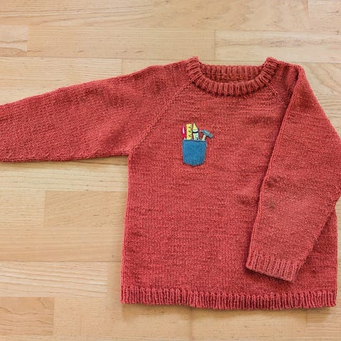 Ny handmade merinould sweater i flot lyserød farve. Den aldrig har været brugt. Str 80/86