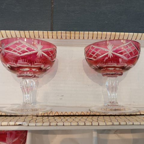 6 flotte champagneglas, fløjter, i bøhmisk krystalglas. Perfekt til en farverig nytårsaften.