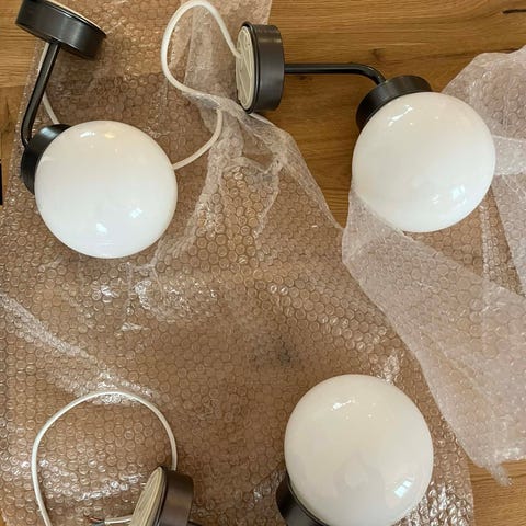 2 stk. flotte Ikea væglamper. Kan bruges i badeværelse. Bærer produktnavnet GRANIT. Måler 20 cm fra væg. Skærmdiameter 9 cm. Fremstillet i 1995. Sælges samlet