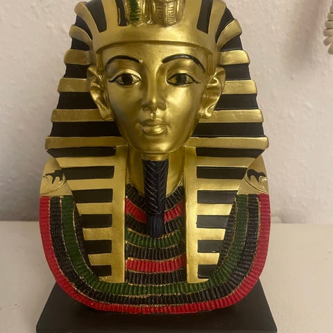 Meget elegant, smuk og fin Træfigur (101cm i højden) forestillende en asiatisk kvinde iført dekorativt tøj, malet med guld, og flerfarvede mosaikindsatser. Figuren har en detaljeret ansigtsudtryk og bærer en krone. Figuren står på en sort base og er håndmalet med fokus på tekstur og farve. Skal ses i virkeligheden. I meget fin stand og meget dekorativ. Kan evt. leveres. 1800kr