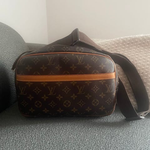 Louis Vuitton skuldertaske i læder til kvinde med klassisk monogramdesign.