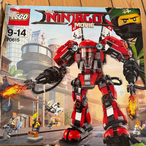 LEGO NINJAGO robot legetøj med bevægelige led og detaljerede dele. Fremstillet i plastik, designet til at samle og lege med, egnet til børn og samlere. Ca 34 cm højt. Samlet, medfølger 4 små figur og manual. Vær opmærksom at figur mangler et stykke i sin venstre fod. kommer fra et dyr/ røgfrit hjem på Ydre Nørrebro.