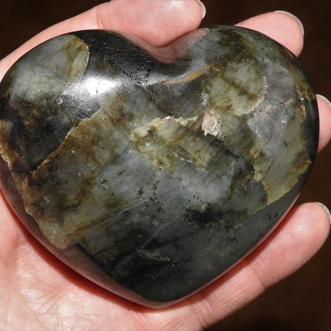 Labradorit hjerte 6. 7,8 x 6,9 x 3,8 cm. 299 gram