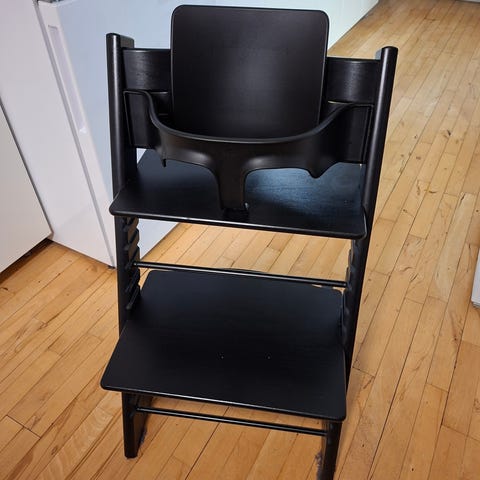 Trip trap stol med lette brugsspor sælges med bøjle og ryglæn, trænger til en klud