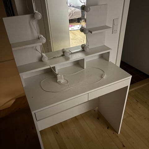 Vicco Makeupbord/sminke bord 110cm lang med LED belysning gives bort. Afhentes i Farum inden nytår