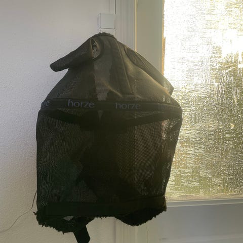 Ride om flue maske, str. Sl islænder, maske med ører. Den er brugt en gang. Det fungerede ikke med den på min hest.