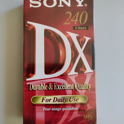 Sony DX VHS bånd med en optagetid på 240 minutter (4 timer). Båndet er designet til daglig brug og tilbyder holdbarhed og god kvalitet til optagelser. Et styk