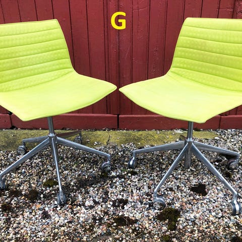 Kontorstole med hæve/sænke funktion, model Arper Catifa 46. Skallerne er betrukket med slidstærkt kanalsyet stof.