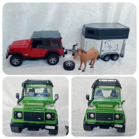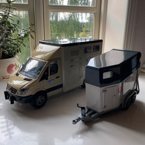 Jeep med hestetrailer og hest, Bruder, Sælger dette seje sæt med jeep, hestetrailer og en hest.