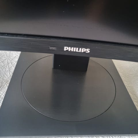 HP 34 tommer skærm med HDMI-tilslutning. Skærmen har en bred formatstørrelse på 34 tommer, velegnet til arbejde og underholdning. Designet med en sort finish og monteret på en justerbar stander, som kan fastgøres til bordet for fleksibel placering.