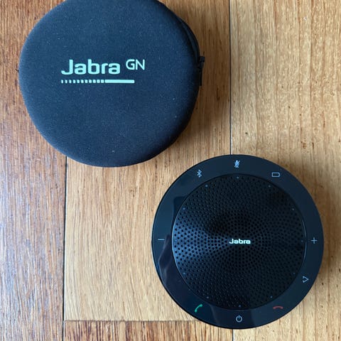 Jabra Speak 510 konference-/speakerphone – perfekt til Teams/Zoom/telefonmøder. God lyd og mikrofon, nem at have med i tasken.