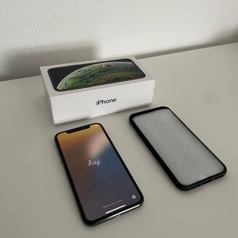 iPhone XS, lader kabel og høretelefoner aldrig brugt. Få brugsspor på skærmen.