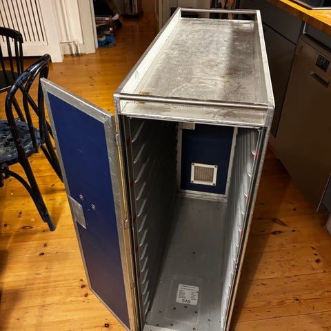Designet til opbevaring og transport af mad, drikke og andre varer under flyvninger. Robust konstruktion. Hjul kan låses. Konstrueret i lette materialer, og kan let flyttes.
